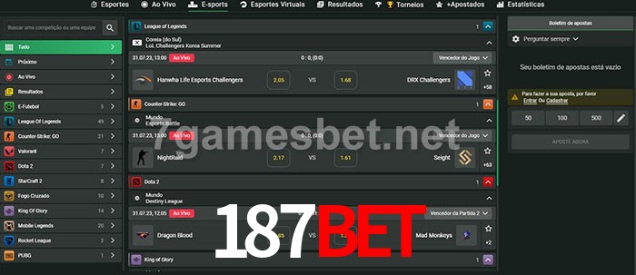 A aposta 187bet oferece aos jogadores a experiência mais conveniente de apostas em eSports!